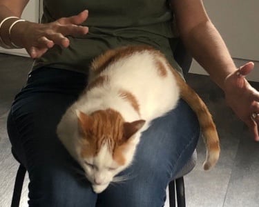 Most owners like to stay to observe. They may also experience a sense of calm during the session. Sometimes an animal will only settle with its owner present. Occasionally, an animal will involve the owner in some way. For example, by sitting on their lap.